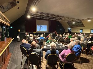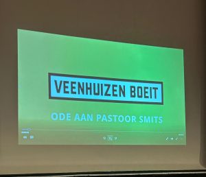 Na het officiële gedeelte werden de aanwezigen vermaakt met een lezing van Mariët Meester. Zij vertelde over het tot stand komen van haar boeken “Koloniekak”, “Holland Siberië” en “Koloniekind”. Deze boeken gaan allemaal over het dorp Veenhuizen waar zij is opgegroeid. Ze sprak over de verpleegden, zoals de gedetineerden hier vroeger werden genoemd en het gezinsleven van de daar werkende bewoners. Af en toe las ze een passage uit haar boeken voor en tussendoor werden video’s getoond van een aantal interviews die ze heeft afgenomen om haar boeken te kunnen schrijven.